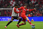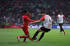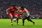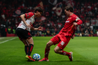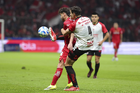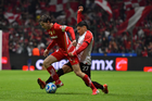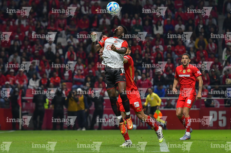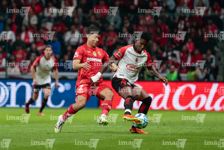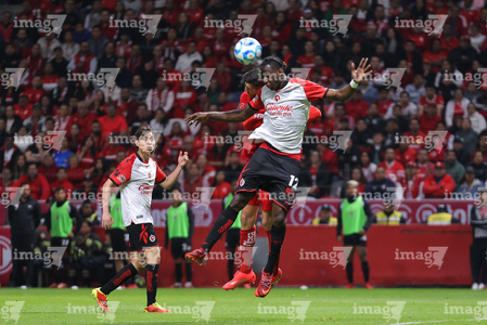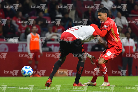 Toluca, Estado de México, 13 de febrero de 2026. Paulinho y Jackson Porozo, durante el partido correspondiente a la jornada 6 del torneo Clausura 2026 de la Liga BBVA MX, entre los Diablos Rojos del Toluca y los Xolos de Tijuana, realizado en el estadio Nemesio Diez. Foto: Imago7/ Jesús Esquivel