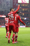 Toluca, Estado de México, 13 de febrero de 2026. Paulinho y Marcel Ruiz en festejo de gol, durante el partido correspondiente a la jornada 6 del torneo Clausura 2026 de la Liga BBVA MX, entre los Diablos Rojos del Toluca y los Xolos de Tijuana, realizado en el estadio Nemesio Diez. Foto: Imago7/ Rafael Vadillo