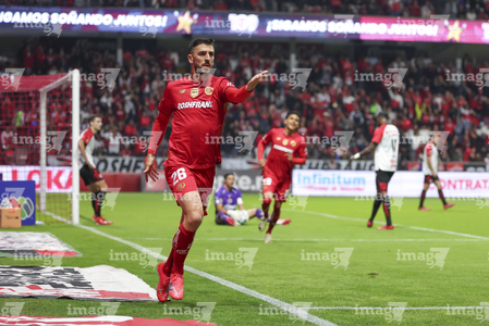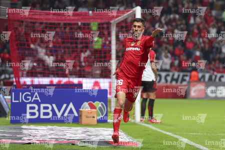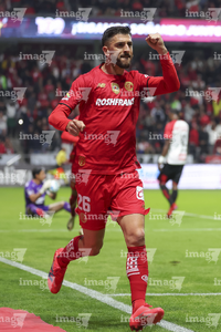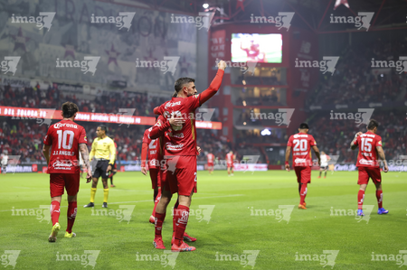 Toluca, Estado de México, 13 de febrero de 2026. Hugo González en festejo de gol, durante el partido correspondiente a la jornada 6 del torneo Clausura 2026 de la Liga BBVA MX, entre los Diablos Rojos del Toluca y los Xolos de Tijuana, realizado en el estadio Nemesio Diez. Foto: Imago7/ Arturo Hernández