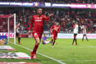 Toluca, Estado de México, 13 de febrero de 2026. Paulinho anota gol, durante el partido correspondiente a la jornada 6 del torneo Clausura 2026 de la Liga BBVA MX, entre los Diablos Rojos del Toluca y los Xolos de Tijuana, realizado en el estadio Nemesio Diez. Foto: Imago7/ Jesús Esquivel