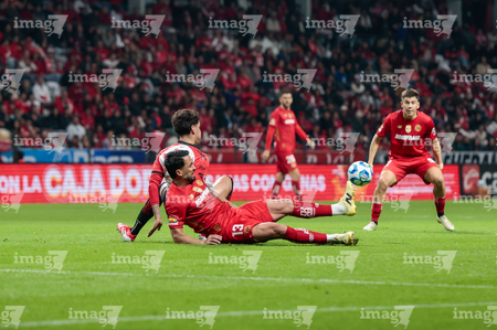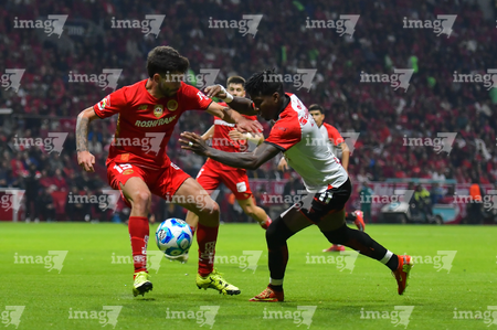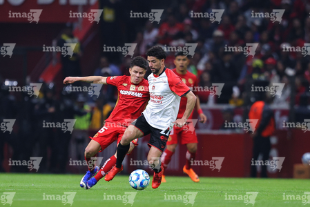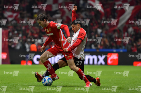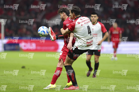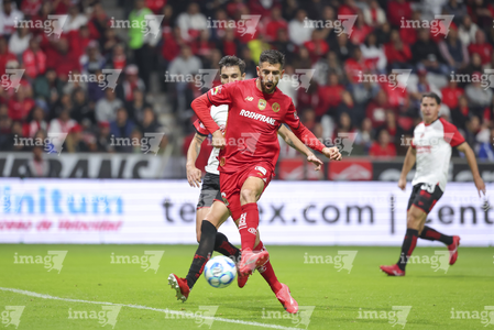 Toluca, Estado de México, 13 de febrero de 2026. Mourad Daoudi y Federico Pereira, durante el partido correspondiente a la jornada 6 del torneo Clausura 2026 de la Liga BBVA MX, entre los Diablos Rojos del Toluca y los Xolos de Tijuana, realizado en el estadio Nemesio Diez. Foto: Imago7/ Jesús Esquivel