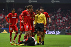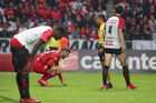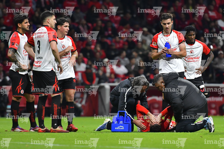 Toluca, Estado de México, 13 de febrero de 2026. Paulinho resultó lesionado, durante el partido correspondiente a la jornada 6 del torneo Clausura 2026 de la Liga BBVA MX, entre los Diablos Rojos del Toluca y los Xolos de Tijuana, realizado en el estadio Nemesio Diez. Foto: Imago7/ Rafael Vadillo