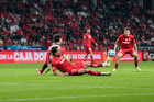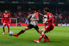 Toluca, Estado de México, 13 de febrero de 2026. Paulinho anota gol que fue anulado, durante el partido correspondiente a la jornada 6 del torneo Clausura 2026 de la Liga BBVA MX, entre los Diablos Rojos del Toluca y los Xolos de Tijuana, realizado en el estadio Nemesio Diez. Foto: Imago7/ Jesús Esquivel