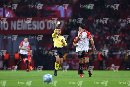 Toluca, Estado de México, 13 de febrero de 2026. Joaquín Alberto Vizcarra, árbitro central muestra tarjeta amarilla de amonestación a Pablo Ortíz, durante el partido correspondiente a la jornada 6 del torneo Clausura 2026 de la Liga BBVA MX, entre los Diablos Rojos del Toluca y los Xolos de Tijuana, realizado en el estadio Nemesio Diez. Foto: Imago7/ Jesús Esquivel