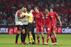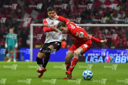 Toluca, Estado de México, 13 de febrero de 2026. Hugo González y José Antonio Rodríguez, durante el partido correspondiente a la jornada 6 del torneo Clausura 2026 de la Liga BBVA MX, entre los Diablos Rojos del Toluca y los Xolos de Tijuana, realizado en el estadio Nemesio Diez. Foto: Imago7/ Rafael Vadillo