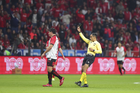 Toluca, Estado de México, 13 de febrero de 2026. Joaquín Alberto Vizcarra, árbitro central, durante el partido correspondiente a la jornada 6 del torneo Clausura 2026 de la Liga BBVA MX, entre los Diablos Rojos del Toluca y los Xolos de Tijuana, realizado en el estadio Nemesio Diez. Foto: Imago7/ Rafael Vadillo