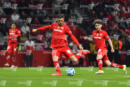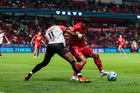 Toluca, Estado de México, 13 de febrero de 2026. Mourad Daoudi y Federico Pereira, durante el partido correspondiente a la jornada 6 del torneo Clausura 2026 de la Liga BBVA MX, entre los Diablos Rojos del Toluca y los Xolos de Tijuana, realizado en el estadio Nemesio Diez. Foto: Imago7/Daniel Arriaga