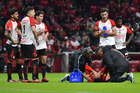 Toluca, Estado de México, 13 de febrero de 2026. Unai Bilbao resultó lesionado, durante el partido correspondiente a la jornada 6 del torneo Clausura 2026 de la Liga BBVA MX, entre los Diablos Rojos del Toluca y los Xolos de Tijuana, realizado en el estadio Nemesio Diez. Foto: Imago7/ Rafael Vadillo