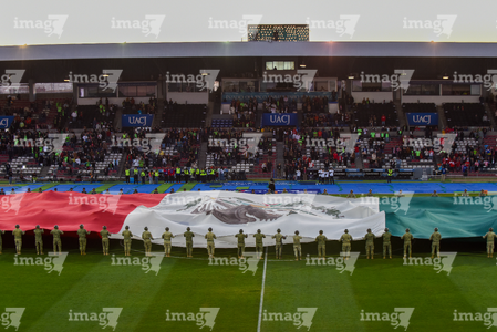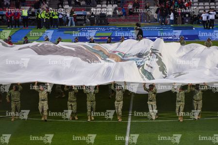 Ciudad Juárez, Chihuahua, 14 de febrero de 2026. Bandera de México, durante el partido correspondiente a la jornada 6 del torneo Clausura 2026 de la Liga BBVA MX, entre los Bravos de FC Juárez y los Rayos del Necaxa, realizado en realizado en el estadio Olímpico Benito Juárez. Foto: Imago7/ José Zamora