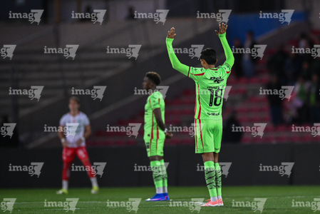 Ciudad Juárez, Chihuahua, 14 de febrero de 2026. Sebastián Jurado en festejo, durante el partido correspondiente a la jornada 6 del torneo Clausura 2026 de la Liga BBVA MX, entre los Bravos de FC Juárez y los Rayos del Necaxa, realizado en realizado en el estadio Olímpico Benito Juárez. Foto: Imago7/ José Zamora