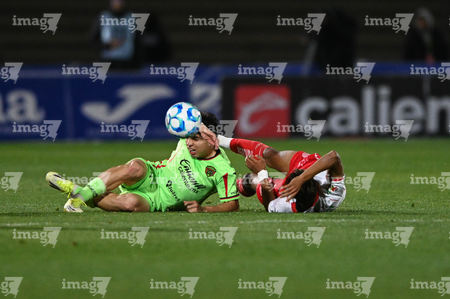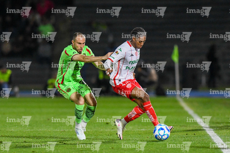 Ciudad Juárez, Chihuahua, 14 de febrero de 2026. Manuel Mayorga y Kevin Ante, durante el partido correspondiente a la jornada 6 del torneo Clausura 2026 de la Liga BBVA MX, entre los Bravos de FC Juárez y los Rayos del Necaxa, realizado en realizado en el estadio Olímpico Benito Juárez. Foto: Imago7/Alejandro Rodríguez