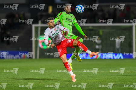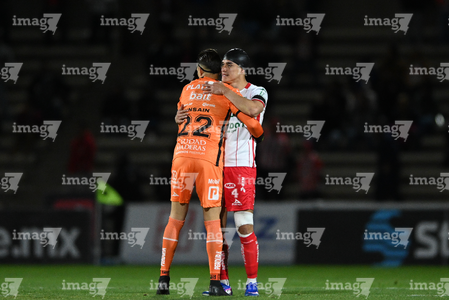 Ciudad Juárez, Chihuahua, 14 de febrero de 2026. Julián Carranza y Moises Castillo, durante el partido correspondiente a la jornada 6 del torneo Clausura 2026 de la Liga BBVA MX, entre los Bravos de FC Juárez y los Rayos del Necaxa, realizado en realizado en el estadio Olímpico Benito Juárez. Foto: Imago7/Alejandro Rodríguez