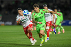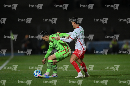 Ciudad Juárez, Chihuahua, 14 de febrero de 2026. Francisco Nevárez y Tomas Badaloni, durante el partido correspondiente a la jornada 6 del torneo Clausura 2026 de la Liga BBVA MX, entre los Bravos de FC Juárez y los Rayos del Necaxa, realizado en realizado en el estadio Olímpico Benito Juárez. Foto: Imago7/Alejandro Rodríguez