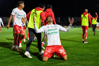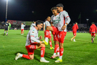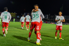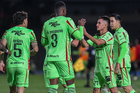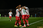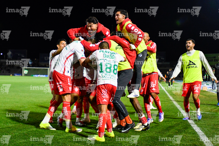 Ciudad Juárez, Chihuahua, 14 de febrero de 2026. Jugadores de FC Juárez en festejo, durante el partido correspondiente a la jornada 6 del torneo Clausura 2026 de la Liga BBVA MX, entre los Bravos de FC Juárez y los Rayos del Necaxa, realizado en realizado en el estadio Olímpico Benito Juárez. Foto: Imago7/ José Zamora