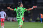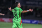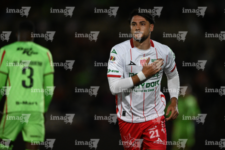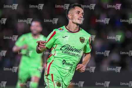 Ciudad Juárez, Chihuahua, 14 de febrero de 2026. Julían Carranza en festejo de gol, durante el partido correspondiente a la jornada 6 del torneo Clausura 2026 de la Liga BBVA MX, entre los Bravos de FC Juárez y los Rayos del Necaxa, realizado en realizado en el estadio Olímpico Benito Juárez. Foto: Imago7/ José Zamora