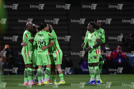 Ciudad Juárez, Chihuahua, 14 de febrero de 2026. Jugadores del FC Juárez en festejo de gol, durante el partido correspondiente a la jornada 6 del torneo Clausura 2026 de la Liga BBVA MX, entre los Bravos de FC Juárez y los Rayos del Necaxa, realizado en realizado en el estadio Olímpico Benito Juárez. Foto: Imago7/Alejandro Rodríguez