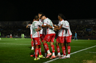 Ciudad Juárez, Chihuahua, 14 de febrero de 2026. Jugadores de Necaxa, durante el partido correspondiente a la jornada 6 del torneo Clausura 2026 de la Liga BBVA MX, entre los Bravos de FC Juárez y los Rayos del Necaxa, realizado en realizado en el estadio Olímpico Benito Juárez. Foto: Imago7/ José Zamora