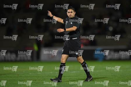 Ciudad Juárez, Chihuahua, 14 de febrero de 2026. Oscar Mejía, árbitro central, durante el partido correspondiente a la jornada 6 del torneo Clausura 2026 de la Liga BBVA MX, entre los Bravos de FC Juárez y los Rayos del Necaxa, realizado en realizado en el estadio Olímpico Benito Juárez. Foto: Imago7/ José Zamora