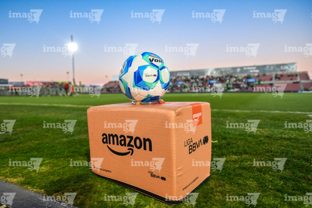 Ciudad Juárez, Chihuahua, 14 de febrero de 2026. Balón de futbol Voit Aereus sobre caja de Amazon, durante el partido correspondiente a la jornada 6 del torneo Clausura 2026 de la Liga BBVA MX, entre los Bravos de FC Juárez y los Rayos del Necaxa, realizado en realizado en el estadio Olímpico Benito Juárez. Foto: Imago7/Alejandro Rodríguez