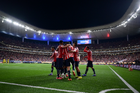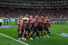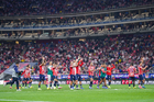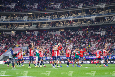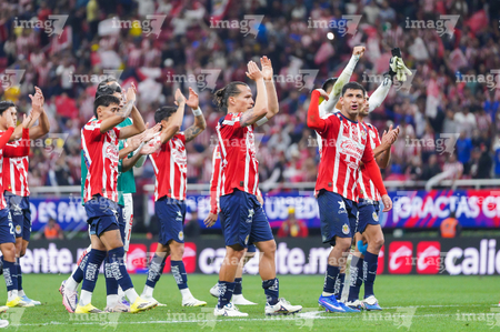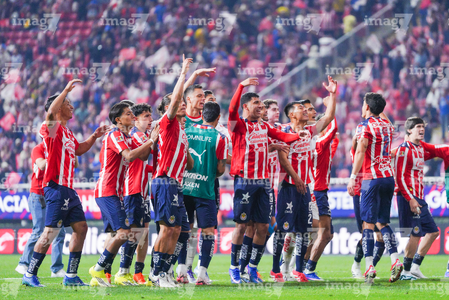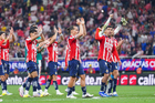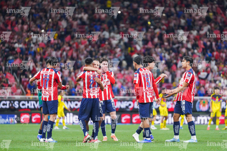 Zapopan, Jalisco, 14 de febrero de 2026. Jugadores de Chivas, durante el partido correspondiente a la jornada 6 del torneo Clausura 2026 de la Liga BBVA MX, entre las Chivas Rayadas del Guadalajara y las Águilas del América, realizado en el estadio Akron. Foto: Imago7/ Juan Carlos Cubeyro.