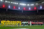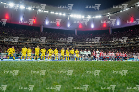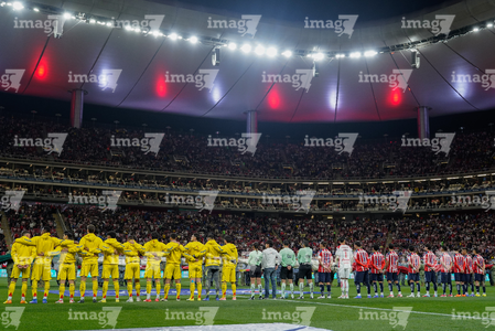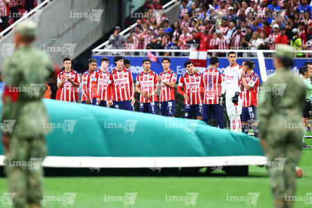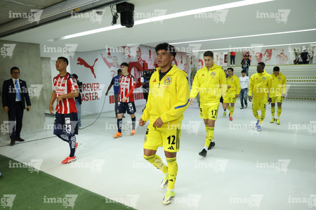 Zapopan, Jalisco, 14 de febrero de 2026. Protocolo, durante el partido correspondiente a la jornada 6 del torneo Clausura 2026 de la Liga BBVA MX, entre las Chivas Rayadas del Guadalajara y las Águilas del América, realizado en el estadio Akron. Foto: Imago7/ Juan Carlos Cubeyro.