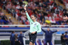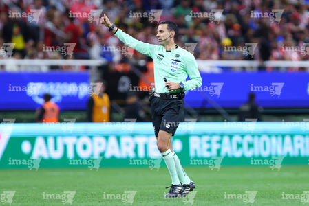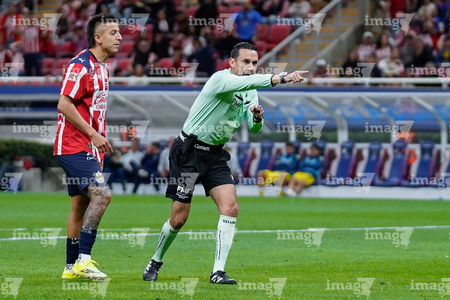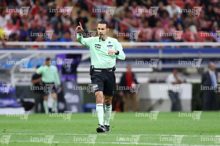 Zapopan, Jalisco, 14 de febrero de 2026. César Arturo Ramos, árbitro central, durante el partido correspondiente a la jornada 6 del torneo Clausura 2026 de la Liga BBVA MX, entre las Chivas Rayadas del Guadalajara y las Águilas del América, realizado en el estadio Akron. Foto: Imago7/ Juan Carlos Cubeyro.