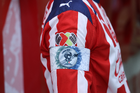 Zapopan, Jalisco, 14 de febrero de 2026. Brazalete conmemorativo de la Fuerza Aerea Mexicana, durante el partido correspondiente a la jornada 6 del torneo Clausura 2026 de la Liga BBVA MX, entre las Chivas Rayadas del Guadalajara y las Águilas del América, realizado en el estadio Akron. Foto: Imago7/ Juan Carlos Cubeyro.