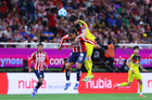 Zapopan, Jalisco, 14 de febrero de 2026. Portigoles, durante el partido correspondiente a la jornada 6 del torneo Clausura 2026 de la Liga BBVA MX, entre las Chivas Rayadas del Guadalajara y las Águilas del América, realizado en el estadio Akron. Foto: Imago7/ Juan Carlos Cubeyro.