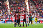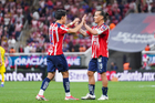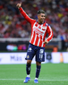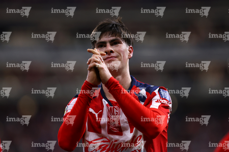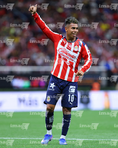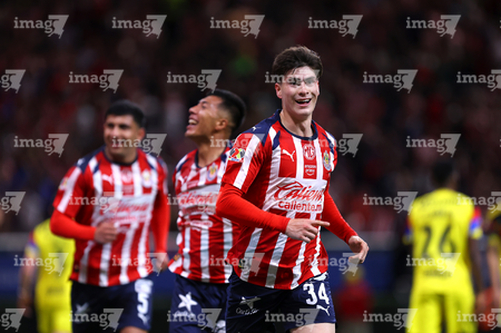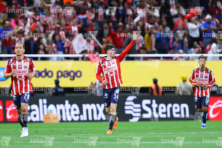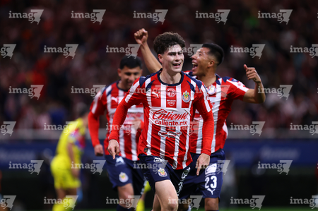 Zapopan, Jalisco, 14 de febrero de 2026. Armando González en festejo de gol, durante el partido correspondiente a la jornada 6 del torneo Clausura 2026 de la Liga BBVA MX, entre las Chivas Rayadas del Guadalajara y las Águilas del América, realizado en el estadio Akron. Foto: Imago7/ Juan Carlos Cubeyro.
