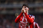 Zapopan, Jalisco, 14 de febrero de 2026. Israel Reyes, durante el partido correspondiente a la jornada 6 del torneo Clausura 2026 de la Liga BBVA MX, entre las Chivas Rayadas del Guadalajara y las Águilas del América, realizado en el estadio Akron. Foto: Imago7/ Juan Carlos Cubeyro.
