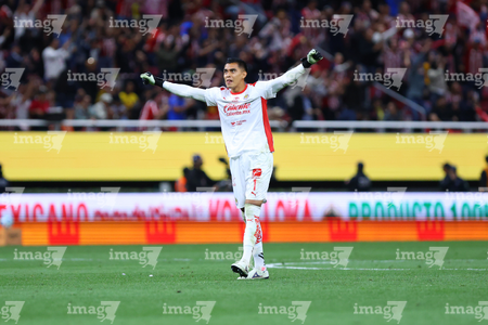 Zapopan, Jalisco, 14 de febrero de 2026. Ángel Malagón, durante el partido correspondiente a la jornada 6 del torneo Clausura 2026 de la Liga BBVA MX, entre las Chivas Rayadas del Guadalajara y las Águilas del América, realizado en el estadio Akron. Foto: Imago7/ Juan Carlos Cubeyro.