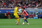 Zapopan, Jalisco, 14 de febrero de 2026. Efraín Álvarez, durante el partido correspondiente a la jornada 6 del torneo Clausura 2026 de la Liga BBVA MX, entre las Chivas Rayadas del Guadalajara y las Águilas del América, realizado en el estadio Akron. Foto: Imago7/ Juan Carlos Cubeyro.