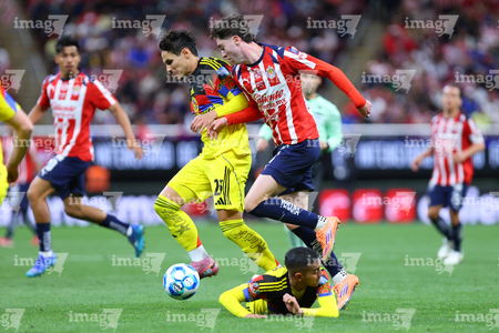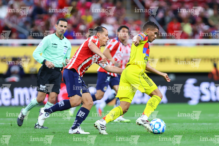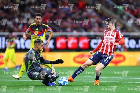 Zapopan, Jalisco, 14 de febrero de 2026. , durante el partido correspondiente a la jornada 6 del torneo Clausura 2026 de la Liga BBVA MX, entre las Chivas Rayadas del Guadalajara y las Águilas del América, realizado en el estadio Akron. Foto: Imago7/Cristian Hernandez