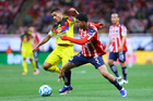 Zapopan, Jalisco, 14 de febrero de 2026. Armando González , durante el partido correspondiente a la jornada 6 del torneo Clausura 2026 de la Liga BBVA MX, entre las Chivas Rayadas del Guadalajara y las Águilas del América, realizado en el estadio Akron. Foto: Imago7/ Juan Carlos Cubeyro.