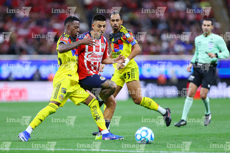 Zapopan, Jalisco, 14 de febrero de 2026. , durante el partido correspondiente a la jornada 6 del torneo Clausura 2026 de la Liga BBVA MX, entre las Chivas Rayadas del Guadalajara y las Águilas del América, realizado en el estadio Akron. Foto: Imago7/ Hugo Ramirez