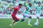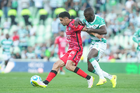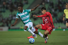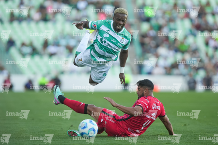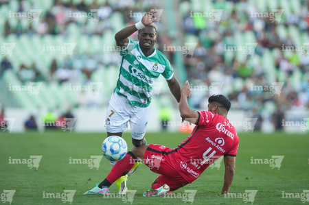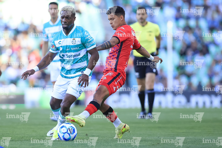Torreón, Coahuila, 15 de febrero de 2026. Cristian Dajome (I), durante el partido correspondiente a la jornada 6 del torneo Clausura 2026 de la Liga BBVA MX, entre los Guerreros de Santos Laguna y los Cañoneros del Mazatlán FC, realizado en el estadio Corona. Foto: Imago7/ Saul Perales