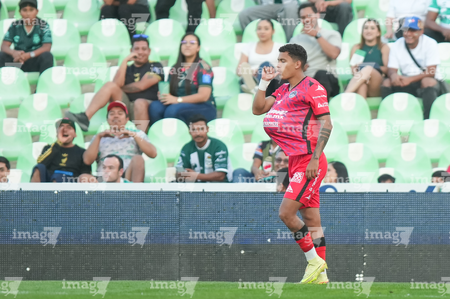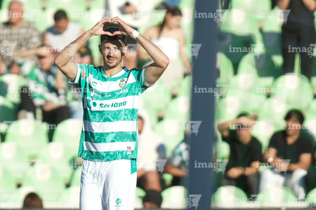 Torreón, Coahuila, 15 de febrero de 2026. Mauro Zaleta en festejo de gol, durante el partido correspondiente a la jornada 6 del torneo Clausura 2026 de la Liga BBVA MX, entre los Guerreros de Santos Laguna y los Cañoneros del Mazatlán FC, realizado en el estadio Corona. Foto: Imago7/ Erick Saavedra