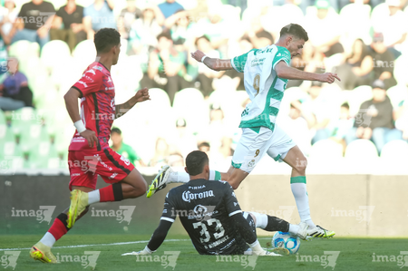 Torreón, Coahuila, 15 de febrero de 2026. Brian Rubio, durante el partido correspondiente a la jornada 6 del torneo Clausura 2026 de la Liga BBVA MX, entre los Guerreros de Santos Laguna y los Cañoneros del Mazatlán FC, realizado en el estadio Corona. Foto: Imago7/ Saul Perales