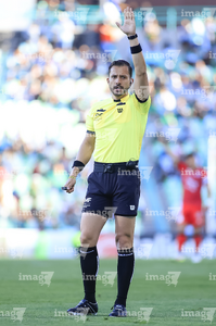 Torreón, Coahuila, 15 de febrero de 2026. Luis Alfredo García, árbitro central, durante el partido correspondiente a la jornada 6 del torneo Clausura 2026 de la Liga BBVA MX, entre los Guerreros de Santos Laguna y los Cañoneros del Mazatlán FC, realizado en el estadio Corona. Foto: Imago7/ Saul Perales