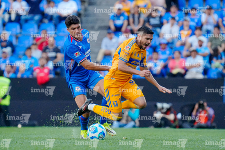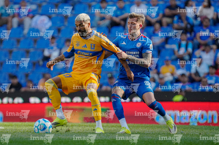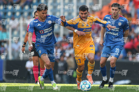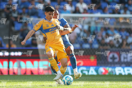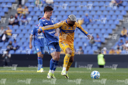 Puebla, Puebla, 15 de febrero de 2026. y Nicolas Ibañez, durante el partido correspondiente a la jornada 6 del torneo Clausura 2026 de la Liga BBVA MX, entre la Máquina Celeste del Cruz Azul y los Tigres de la UANL, realizado en el estadio Cuauhtémoc. Foto: Imago7/ Manlio Contreras