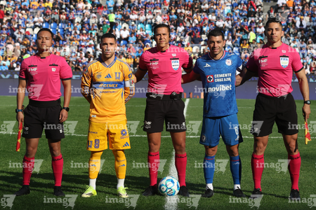 Puebla, Puebla, 15 de febrero de 2026. Protocolo, durante el partido correspondiente a la jornada 6 del torneo Clausura 2026 de la Liga BBVA MX, entre la Máquina Celeste del Cruz Azul y los Tigres de la UANL, realizado en el estadio Cuauhtémoc. Foto: Imago7/ Diego Alducin