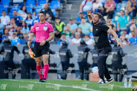 Puebla, Puebla, 15 de febrero de 2026. Nicolás Larcamón, director técnico en reclamo, durante el partido correspondiente a la jornada 6 del torneo Clausura 2026 de la Liga BBVA MX, entre la Máquina Celeste del Cruz Azul y los Tigres de la UANL, realizado en el estadio Cuauhtémoc. Foto: Imago7/ Diego Padilla