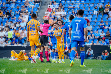 Puebla, Puebla, 15 de febrero de 2026. Fernando Gorriarán en reclamo a Daniel Quintero Huitrón, árbitro central , durante el partido correspondiente a la jornada 6 del torneo Clausura 2026 de la Liga BBVA MX, entre la Máquina Celeste del Cruz Azul y los Tigres de la UANL, realizado en el estadio Cuauhtémoc. Foto: Imago7/ Diego Padilla