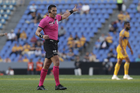 Puebla, Puebla, 15 de febrero de 2026. Daniel Quintero Huitrón, árbitro central, durante el partido correspondiente a la jornada 6 del torneo Clausura 2026 de la Liga BBVA MX, entre la Máquina Celeste del Cruz Azul y los Tigres de la UANL, realizado en el estadio Cuauhtémoc. Foto: Imago7/ Manlio Contreras