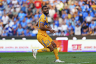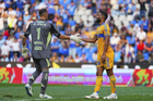 Puebla, Puebla, 15 de febrero de 2026. Jugadores de Tigres, durante el partido correspondiente a la jornada 6 del torneo Clausura 2026 de la Liga BBVA MX, entre la Máquina Celeste del Cruz Azul y los Tigres de la UANL, realizado en el estadio Cuauhtémoc. Foto: Imago7/ Diego Padilla