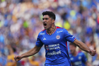 Puebla, Puebla, 15 de febrero de 2026. Nicolàs Ibàñez en festejo de gol, durante el partido correspondiente a la jornada 6 del torneo Clausura 2026 de la Liga BBVA MX, entre la Máquina Celeste del Cruz Azul y los Tigres de la UANL, realizado en el estadio Cuauhtémoc. Foto: Imago7/ Manlio Contreras