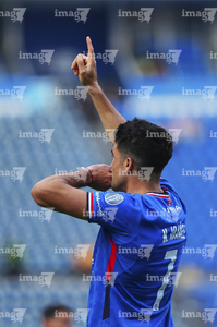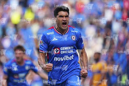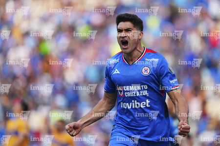 Puebla, Puebla, 15 de febrero de 2026. Juan Sánchez en festejo durante el partido correspondiente a la jornada 6 del torneo Clausura 2026 de la Liga BBVA MX, entre la Máquina Celeste del Cruz Azul y los Tigres de la UANL, realizado en el estadio Cuauhtémoc. Foto: Imago7/Mireya Novo