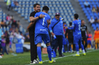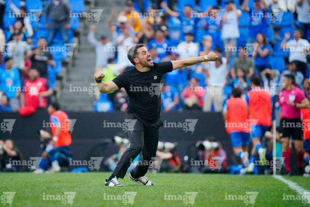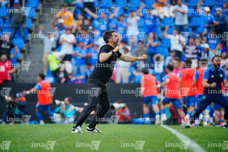 Puebla, Puebla, 15 de febrero de 2026. Nicolás Larcamón, director técnico en festejo de gol, durante el partido correspondiente a la jornada 6 del torneo Clausura 2026 de la Liga BBVA MX, entre la Máquina Celeste del Cruz Azul y los Tigres de la UANL, realizado en el estadio Cuauhtémoc. Foto: Imago7/ Diego Padilla