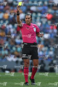 Puebla, Puebla, 15 de febrero de 2026. Daniel Quintero Huitrón, árbitro central, durante el partido correspondiente a la jornada 6 del torneo Clausura 2026 de la Liga BBVA MX, entre la Máquina Celeste del Cruz Azul y los Tigres de la UANL, realizado en el estadio Cuauhtémoc. Foto: Imago7/ Diego Alducin
