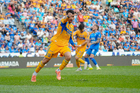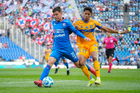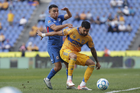 Puebla, Puebla, 15 de febrero de 2026. Rodrigo Aguirre y Gonzalo Piovi, durante el partido correspondiente a la jornada 6 del torneo Clausura 2026 de la Liga BBVA MX, entre la Máquina Celeste del Cruz Azul y los Tigres de la UANL, realizado en el estadio Cuauhtémoc. Foto: Imago7/ Diego Padilla